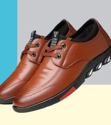 FUXING FASHION men formal shoes leather shoes – Brown